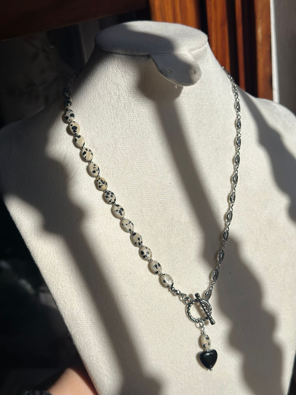 Collar bicolor de piedra jaspeada y acero